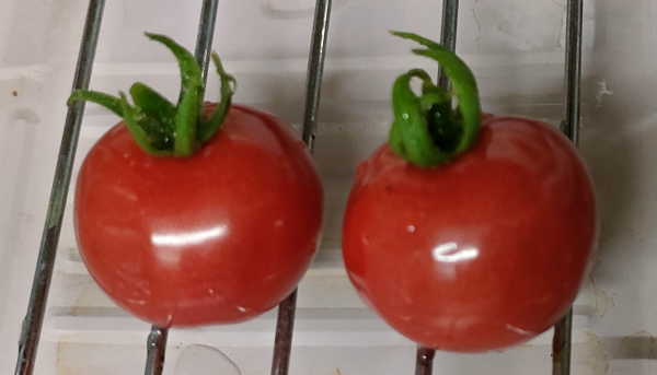 2本仕立ての主枝側のみ茶色くなって萎れていたり葉が落ちたりして、実も赤くなるのが遅く実の表面が少しザラついていました。