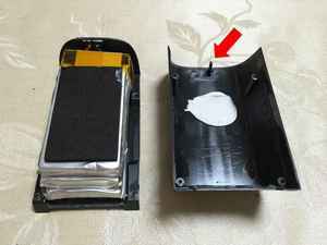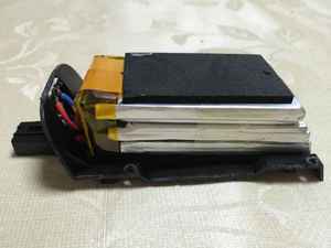 中のリポバッテリーは底とカバーの両方に接着されていましたが隙間からマイナスドライバーを差し込むと簡単にはがれました。 しかし無理やり差し込んでバッテリーに傷つけない様に注意は必要です。 |