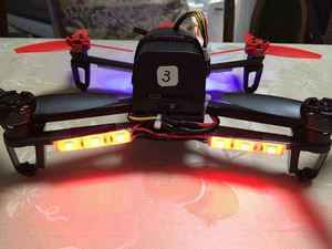 夕方の機体の認識率が落ちる頃にLEDを点滅すると効果が発揮できそうです。その場合は前方に青のLED、後方に赤のLEDを取り付け点滅させてやると前後左右の認識がしやすくなると思います。