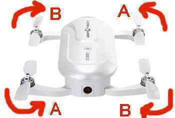 カメラのある正面から見て左側は反時計方向に回ると上昇する向きのプロペラを取り付けます。