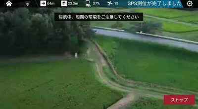- GPSを捕捉している時はワンタッチ帰還が付いているので、簡単に離陸地点に戻ってきます。