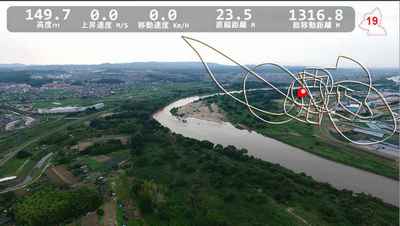 木津川 河川敷でFPV、接続距離とフェイルセーフの確認(飛行データ を合成)