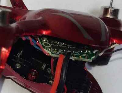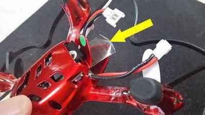 バッテリーの付け外しを何度も行うと、電源ケーブルの付け根が切れたり外れたりすることがありそうです。 画像のように内側への半田付けはモーターのケーブルが邪魔をして大きく開きませんので、左画像でわかるようにカメラへの配線と同じように、基板の裏側(反対側)に半田付けをすれば、簡単に確実に修復できます。 バッテリーのケースのお陰で干渉は無いようです。 出来ればホットボンド等で固定すれば強度が上がります。 |