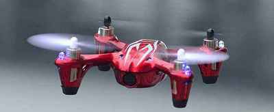 録画中は、ボタン横の小さな赤いLEDが点滅を開始します。 - モード2の場合、左側のスティックを徐々に奥に倒すとプロペラが回転を始めさらに奥に倒すと上昇します。