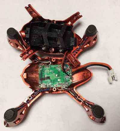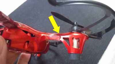 着陸する時の衝撃が大きい時、アームの先端でモーターのハウジング近くの部分が開いてしまいます。