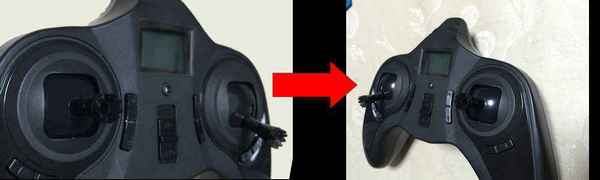 中立のスプリングが無いので少し操作しづらい →→→→→ スティックを左右入れ替え