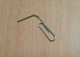 | 取り外した後は、吸い取り線で残ったハンダを出来るだけ吸い取ります。 さらにクリップを下記の様に開いてハンダごてでハンダを溶かしながら基盤の穴を掃除しました。 |