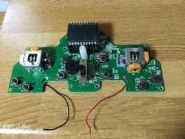 | 上部カバーには小さな基盤がネジ2本で止まっています。 下のカバーには、カメラユニットとバッテリーケースが取り付けられています。 このケースのお陰で、バッテリーで基板を傷つけることは無いと思います。 基板からカメラユニットに電源のみ接続されています。 |