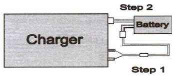 リポバッテリーの出力リード(またはコネクター)を充電器の出力端子に+-の極性に注意して接続します。(極性を間違えると危険です。充電器が故障します。)
