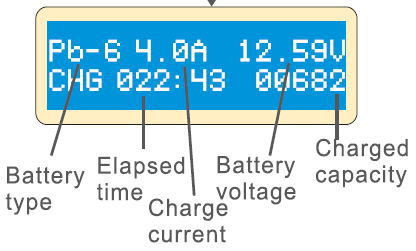 “BATT.TYPE”ボタンを数回押して、「Pb BATT」を選択します。