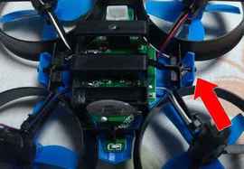 - まず機体にバッテリーを取り付け、コネクターを差し込むと電源が入り、LEDが高速で点滅します 。