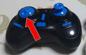 - 左スティックの下にあるスイッチの右端を押すと「ピッ」と鳴り、機体のLEDが点灯から点滅に変わりセット完了です。