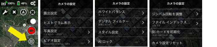 ここで設定できない項目は、Dji GO を使用して設定します。