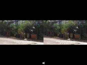 | 5.iPad にプレビュー画面が表示されます リアルタイムにビデオの画面が表示されますが、 WiFi接続なので多少のちらつきと遅れがあります。 右上のゴーグルのようなアイコンをタップすると 3D VRゴーグル用の画面に切り替わります。 |
