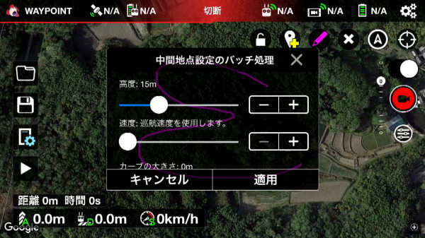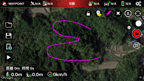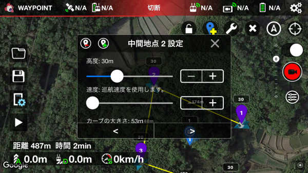 ●通信が切断した時 中間地点毎に設定した飛行速度は制御されず、切断時の飛行速度でミッションは継続されます