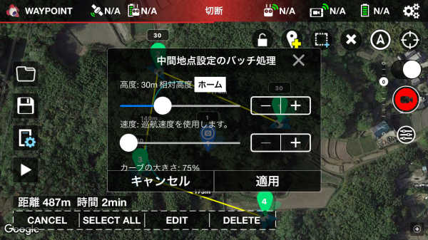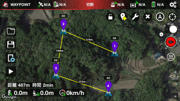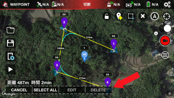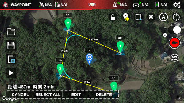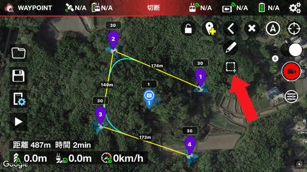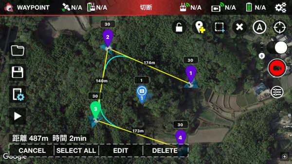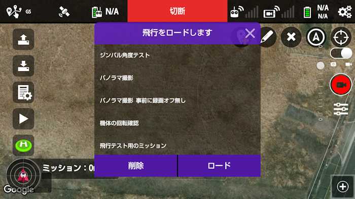 (iOS版では削除は出来ません) - 作成したミッションを、飛行シミュレーションする方法
