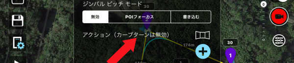 設定項目の中で、POI を配置しジンバルピッチを「最も近いPOI をフォーカス」にして、飛行中にカメラの上下角度を自動調整するようにしている場合、通信が切断した時点からこの機能は働きません。切断された時点のジンバルピッチ(上下角度)のままになります。