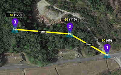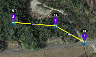 通信が切断されると何が起こるかわからないので、ミッションの最後の中間地点(WayPoint)はホームポイントの近くに配置するのが安全です。(但し、20m以上離しておかないとその場に着陸してしまいます)