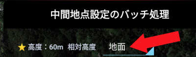 配置した中間地点をタップして「中間地点 設定」の画面を出し、高度の設定を行います。