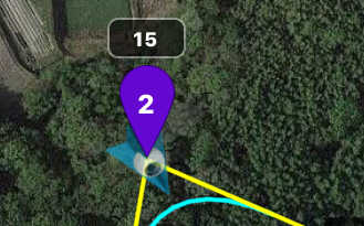 各中間地点には、番号・高度・機首(カメラ)方向が表示されます。