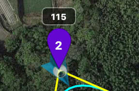 - 緑の●のH のマークがホームポイント、半分隠れている青の丸が送信機の位置