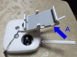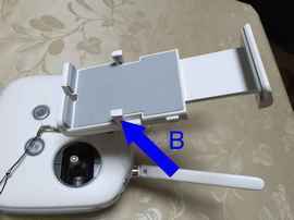 A を押すと自動でホルダ上部が広がります。 普通サイズのスマホはBのツメを立てた状態でセットします。
