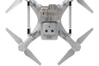 ビジョンポジショニングテクノロジーにより、室内または地面に近い場所で、GPS のないエリアで飛行することができます。 機体の底面にあるカメラおよび超音波センサーが地面のパターンをスキャンし、その位置を特定して、正確に移動することを可能にします。 このお陰で室内でのホバリングも非常に安定します。 左画像の黒い2個の丸が超音波センサー、少し上の小さい丸がビジョン(単眼の小型カメラ) |