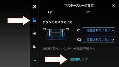 接続できていない時は送信機のLEDは赤く点灯しています。 - スマホを送信機と接続し、DJI GOの「設定メニュー」の