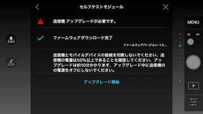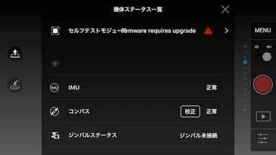 機体のアップデートを実施すると、カメラ等のアップデートも同時に実行されます。