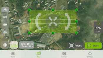 このアプリで、飛行エリアを四角く選択するだけでグリッド状に飛行し自動的にマップを作成してくれます。