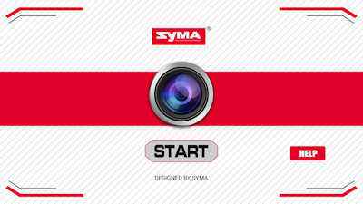 アプリ「SYMA GO」起動時の画面です。 中央下「START」で 操縦 画面 に切り替わる。 右下「HELP」で 説明 画面に切り替わる。 中国語と英語の切り替えができます。 |