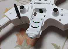 所有している他のドローンと同じモード2となっていますので、送信機のスティック操作に慣れる練習も手軽に出来ます。