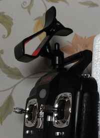 送信機+スマホ で使用する時は、送信機にクリップを差し込み、クリップにスマホを挟んで取り付けます。