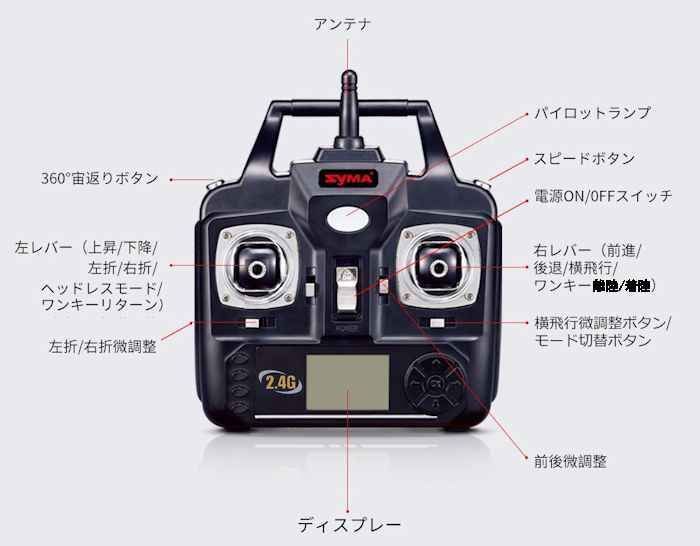 - 基本的な飛行の操作は送信機と同じです。(参考 操作一覧表)