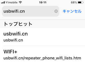 iPhone の Safari はうまく動作しました。 - "usbwifi.cn"と入力しても設定インターフェースを開く事ができない場合は、"usbwifi.cn"の代わりに直接