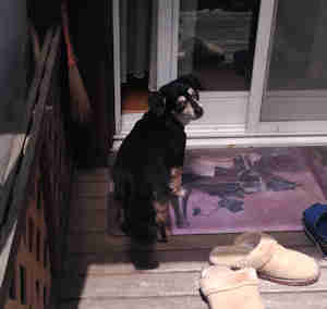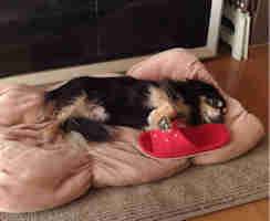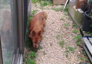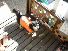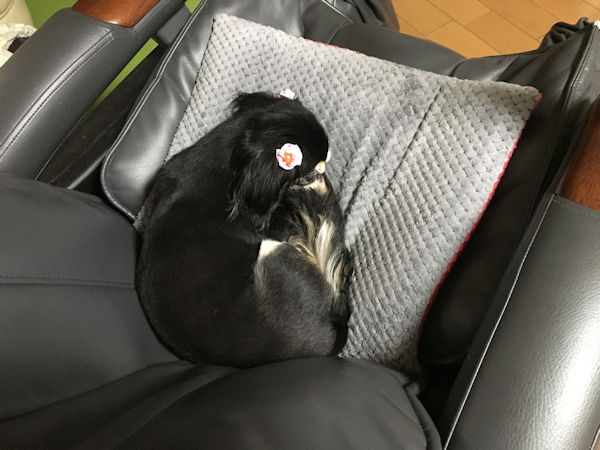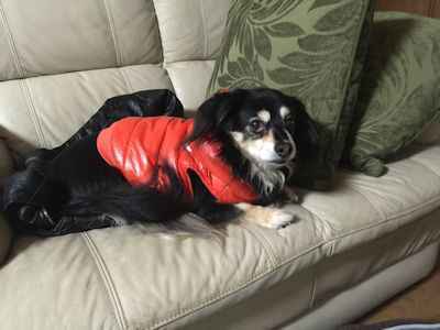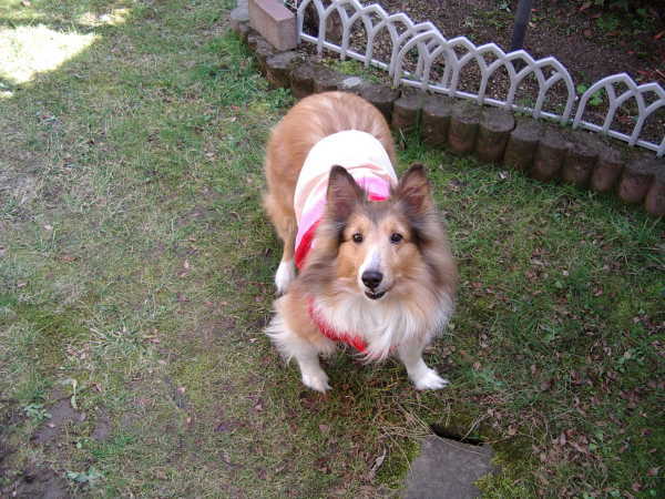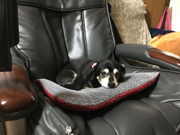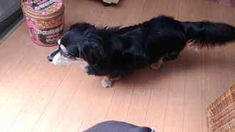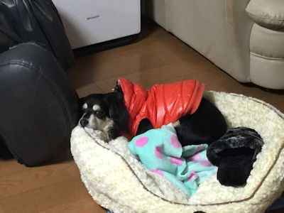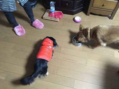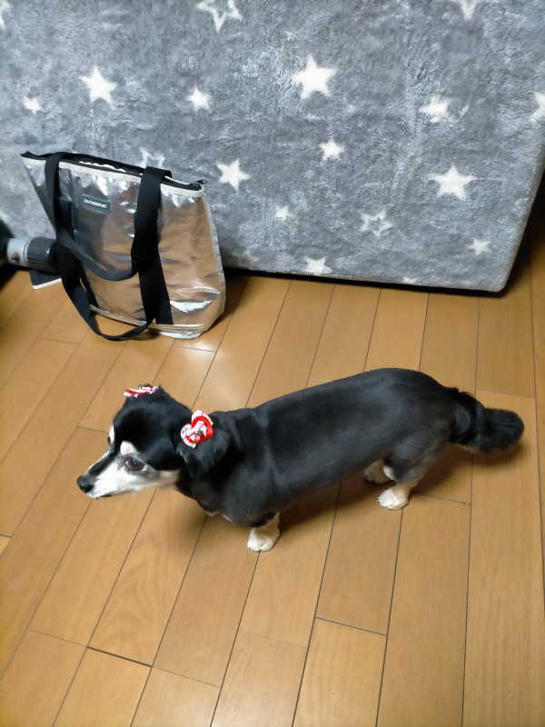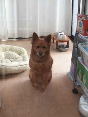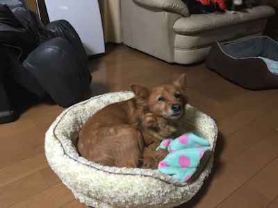 立ち上がる時右の後足が痛そうで「キャイーン」と悲鳴を上げる。しかし歩く時は痛そうに見えず散歩にも行きたがる。