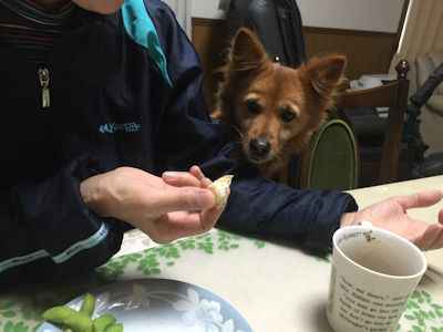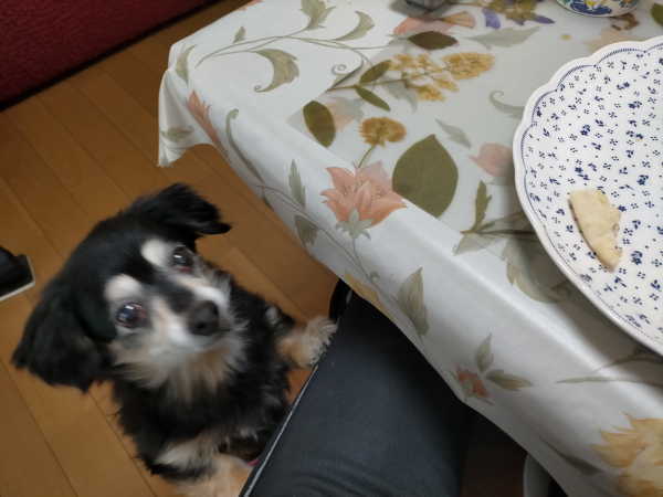 女房はペット用のエサやおやつしかあげないのだけれども、何か食べてるとほしがって近づいてくる。
