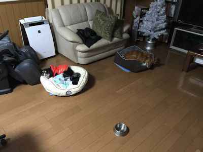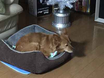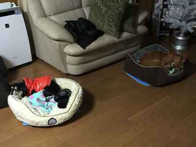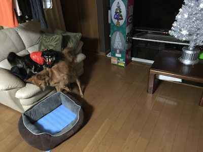| クリスマスの夜、ワンちゃん用のケーキを食べてのんびりくつろいでいる。 | ![]() |