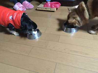 2014年10月22日 食欲旺盛な「アミ」とのんびりしている「ハナ」