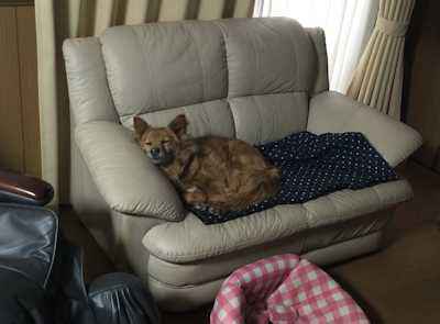 ソファーに顔をうずめ、のんびりとくつろいでいる「ハナ」