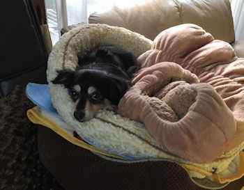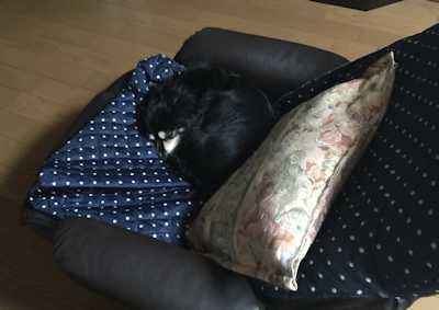 寒がりなのでクッションにすぐ潜り込むアミ。