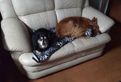 いつもは別々のソファーでくつろぐのに、なぜか今日は同じソファーで寝ている。