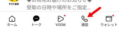 - LINEアプリの下段にあるメニューの矢印の通話タブをタップ
