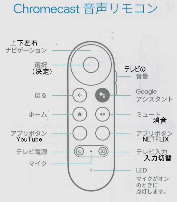 - リモコンは「Google アシスタント」に対応しているので、音声入力時の認識率が非常に高く便利です