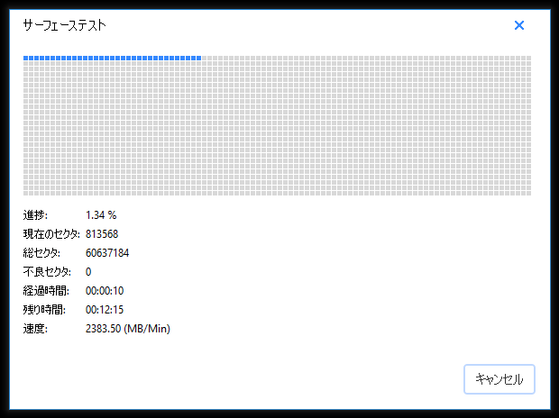 「サーフェステスト」は読んだままデバイスの「不良セクタの検査」でした。