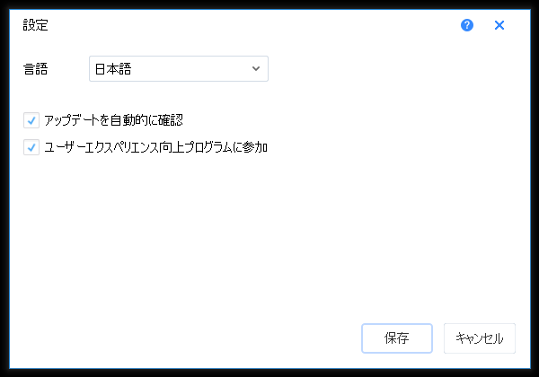 右クリックでもメニューの表示ができ便利です - 設定 ・・・言語設定やアップデート確認