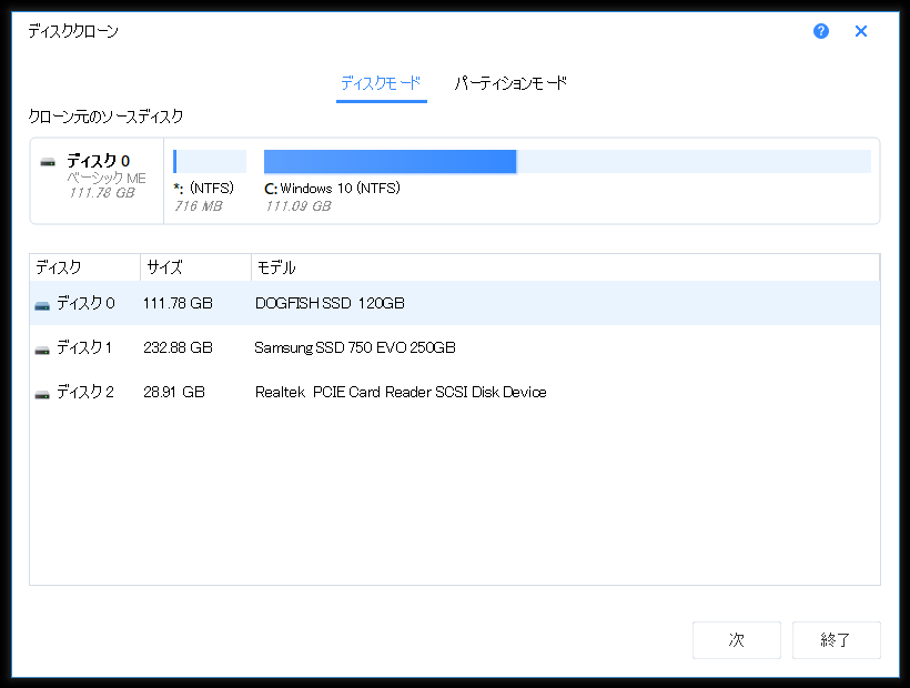 現在のOS(起動ディスク)を簡単に別のHDD、またはSSDに移行(クローン)します。