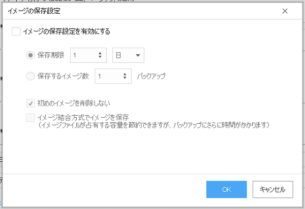 バックアップイメージの保存期間や保存数等の設定を行います。