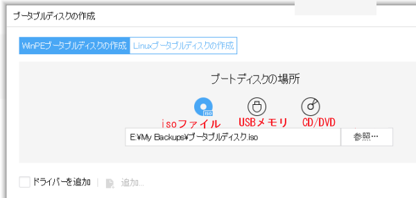 - WinPEブータブルディスク か Linuxブータブルディスク作成を選択します