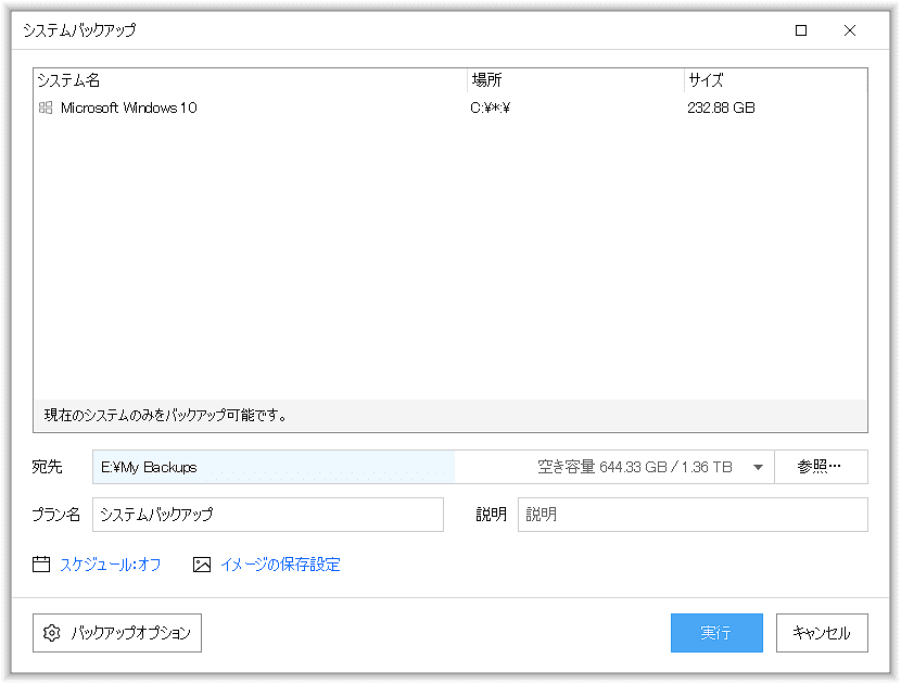 操作は非常に簡単で、「実行」をクリックするとバックアップが開始されます。